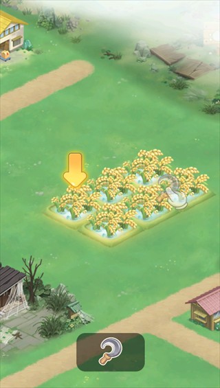点击成熟的稻田,使用镰刀工具收割作物,获取基础食材原料,支持后续的加工和贸易环节。