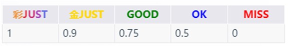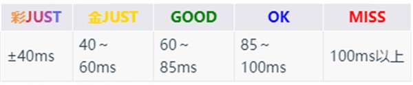 2、判定方式有:彩JUST、金JUST、GOOD、OK 和 MISS。